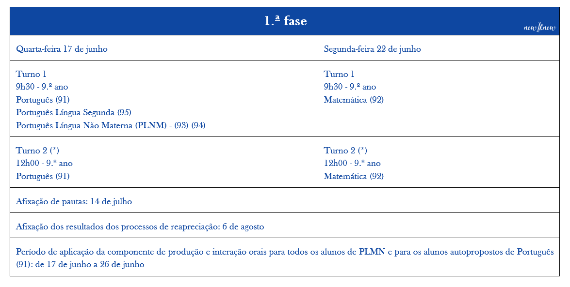 (*) A realização de provas no turno 2 efetua-se nos termos previstos no regulamento.
