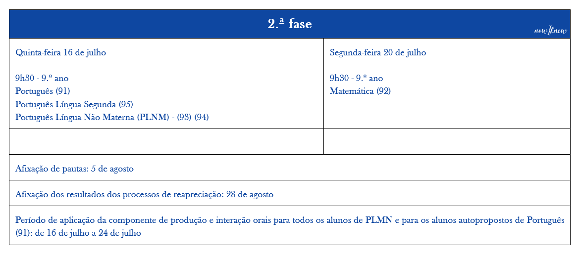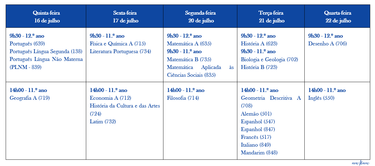 Período de aplicação da componente de produção e interação orais das Línguas Estrangeiras e de PLNM: de 16 de julho a 23 de julho.