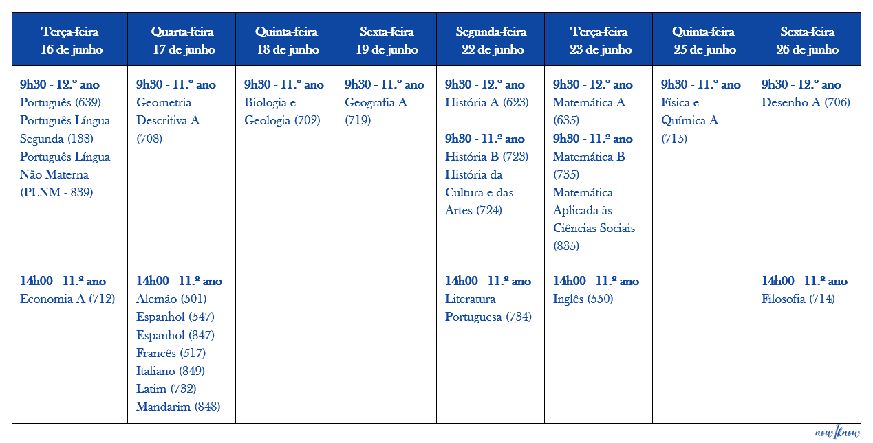 As provas ModA de Inglês (65) e de PLNM (43, 46, 63 e 64) têm uma componente de produção e interação orais a calendarizar pela escola no período de 29 de maio a 9 de junho, podendo esta componente ser marcada para mais do que um dia.